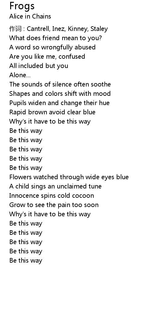 | 作词 : Cantrell, Inez, Kinney, Staley | |
