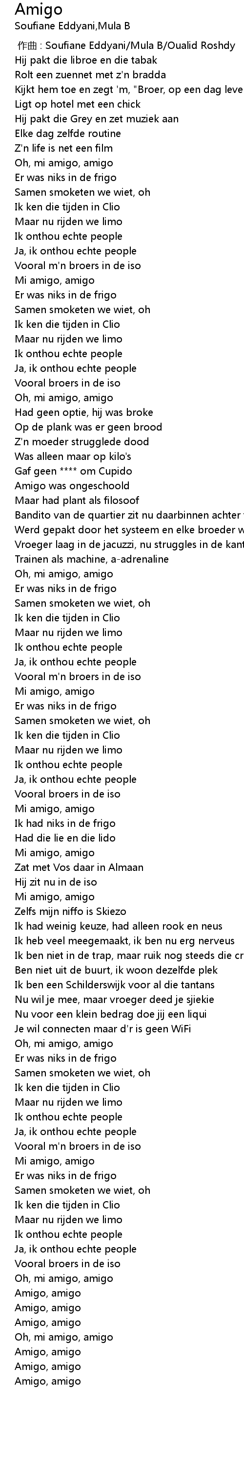 | [00:03.86] | Kijkt hem toe en zegt 'm, "Broer, op een dag leven we goed" |