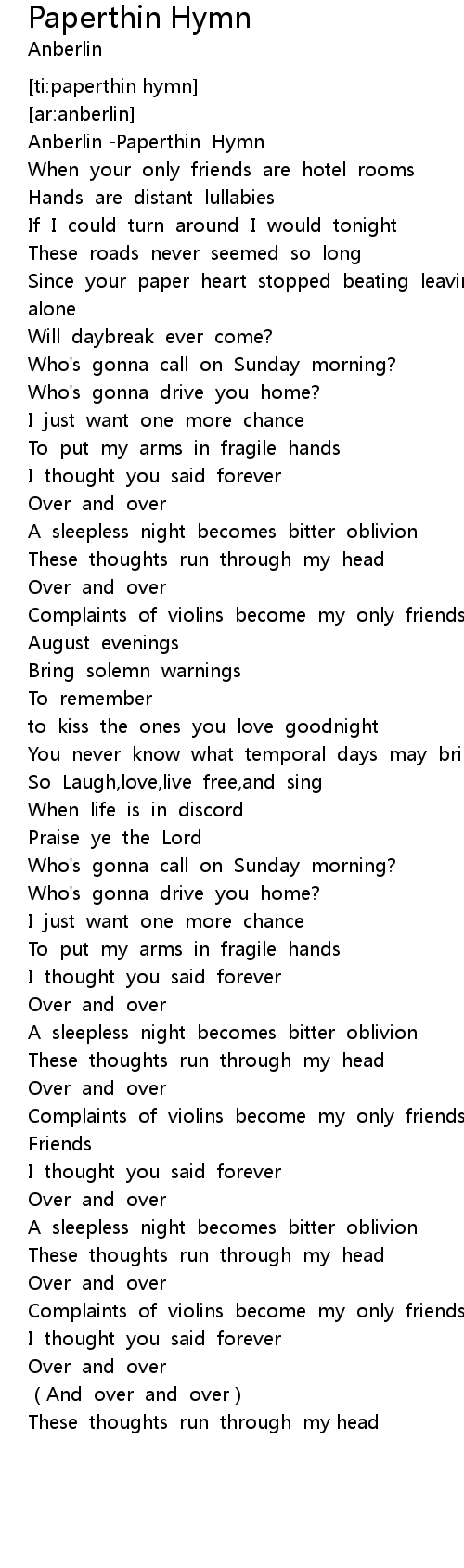 | [ti:paperthin hymn] | |