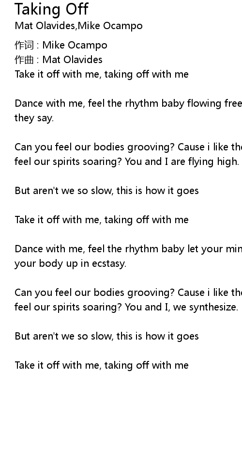 | Take it off with me, taking off with me |