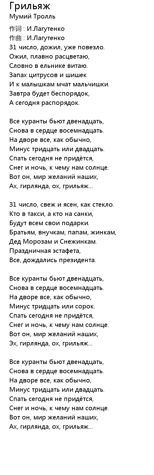 作词 : И.Лагутенко |