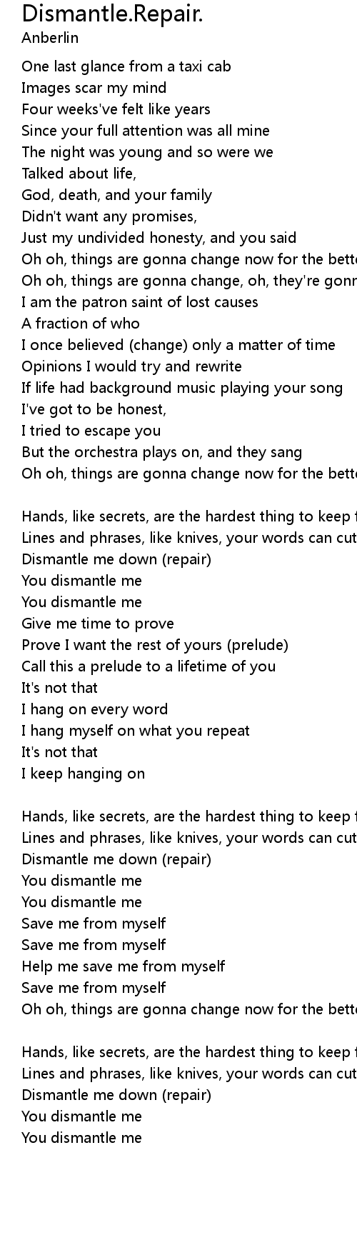 | Hands, like secrets, are the hardest thing to keep from you | |