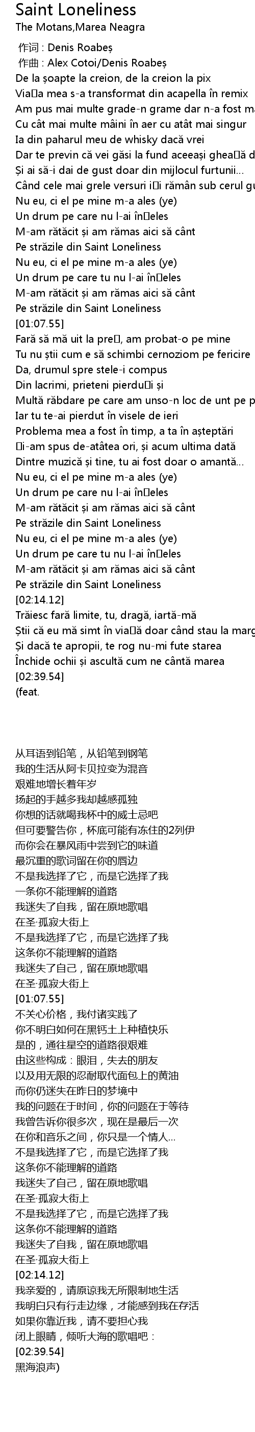 | [01:56.68] | Pe str zile din Saint Loneliness |
