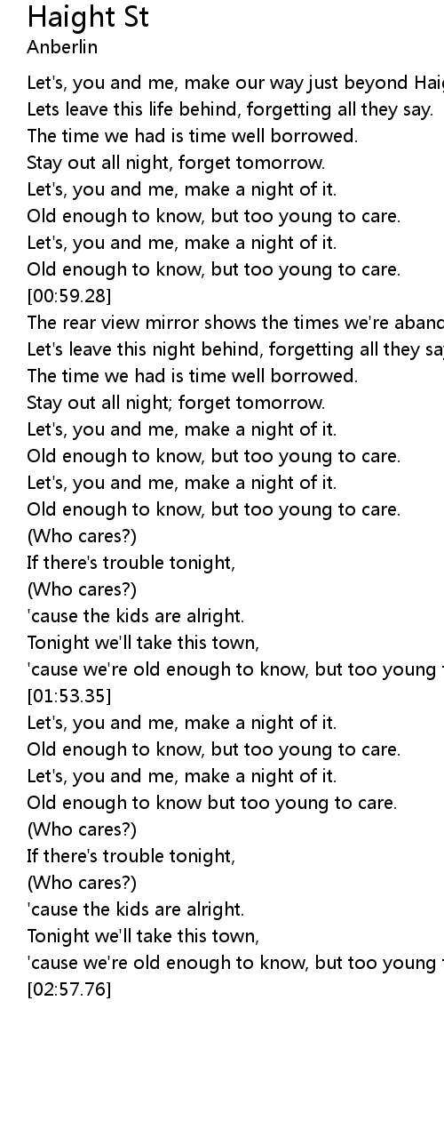 [02:51.60] 'cause we're old enough to know, but too young to care.