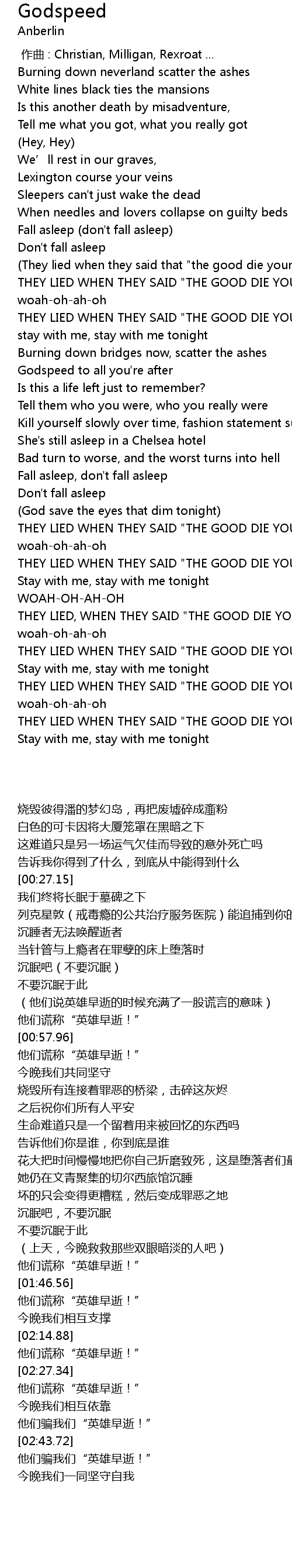 | [00:51.00] | (他们说英雄早逝的时候充满了一股谎言的意味) |