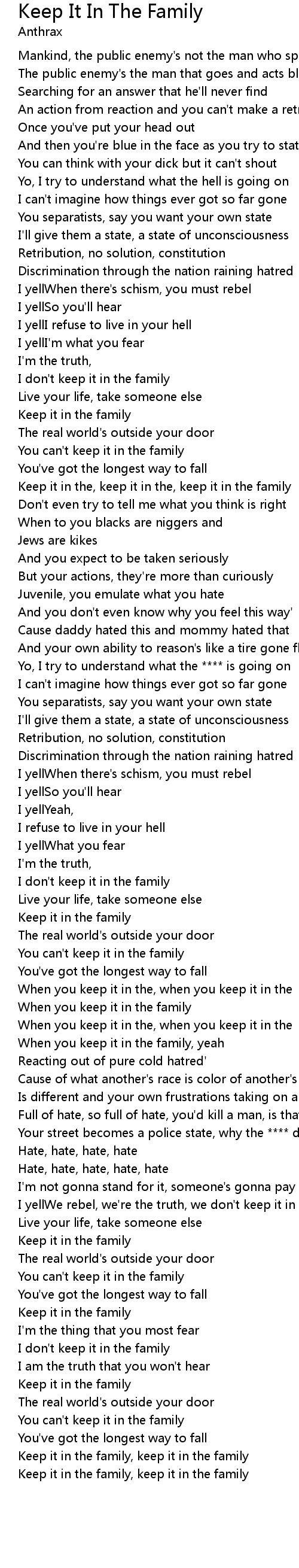 | Keep it in the, keep it in the, keep it in the family | |