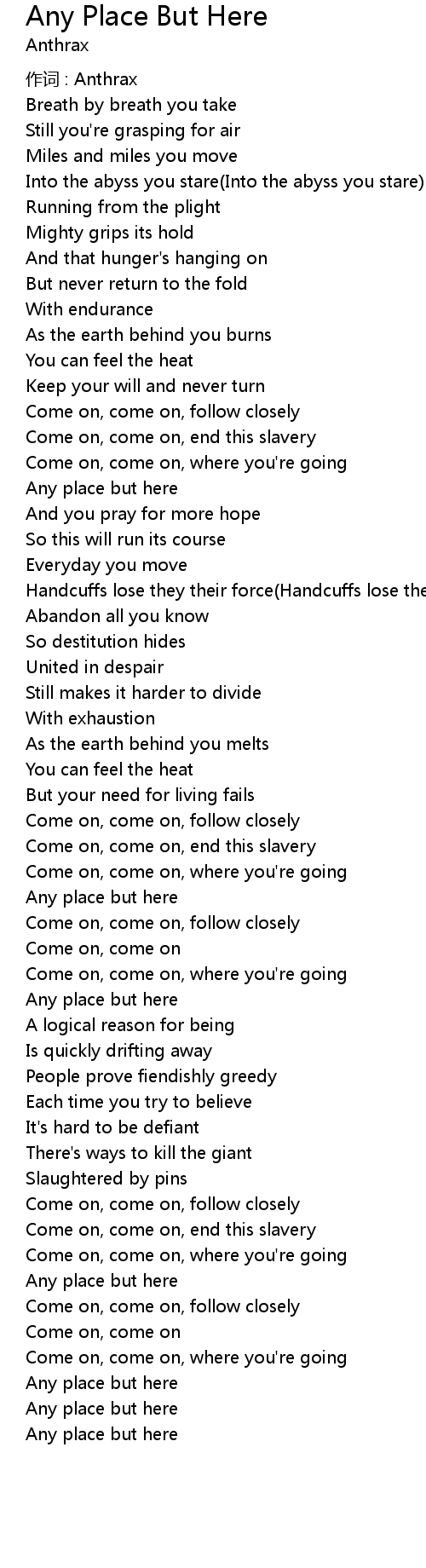 | 歌曲 | Any Place But Here |