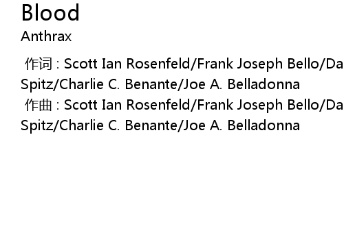 | [00:00.000] | zuò cí : Scott Ian Rosenfeld Frank Joseph Bello Daniel Alan Spitz Charlie C. Benante Joe A. Belladonna |