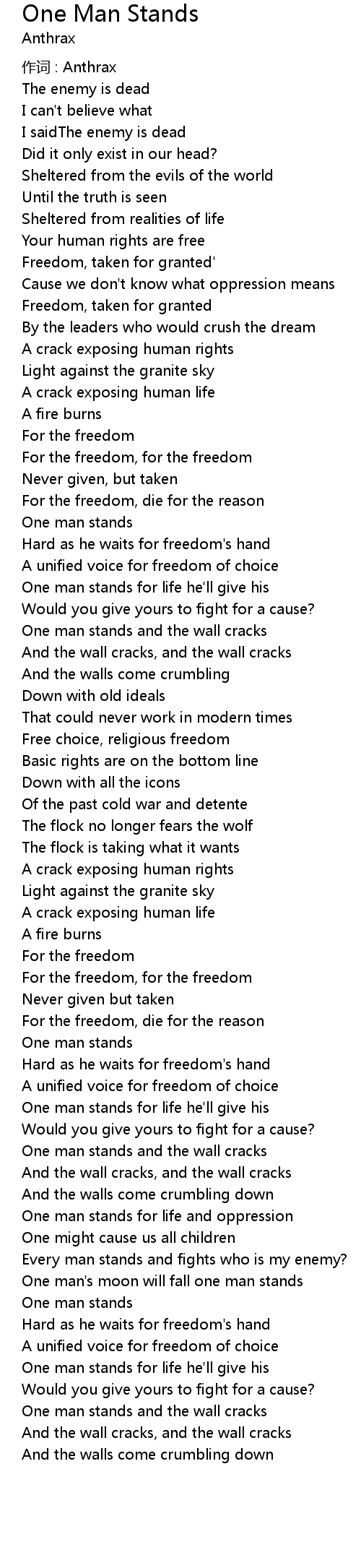 | One man stands for life and oppression | |