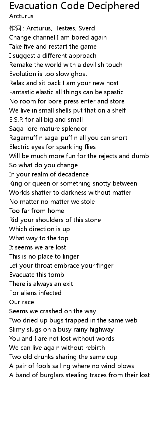 | 歌曲 | Evacuation Code Deciphered |