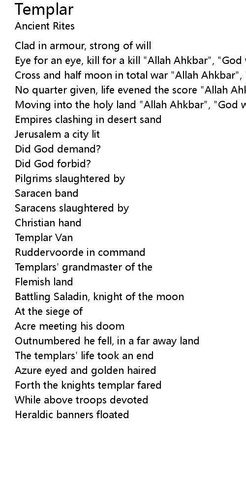 Forth the knights templar fared |