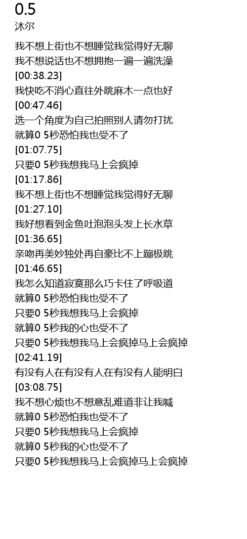 | [03:18.91] | 就算0 5秒恐怕我也受不了 |