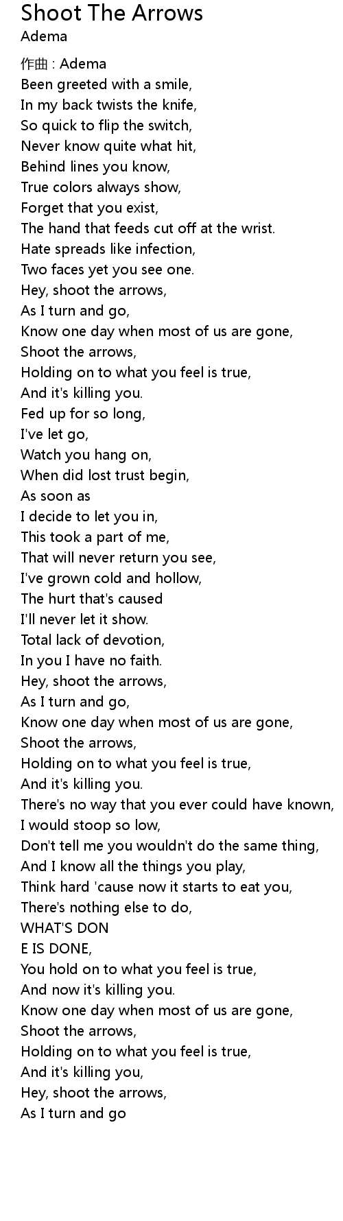 | Hey, shoot the arrows, | |