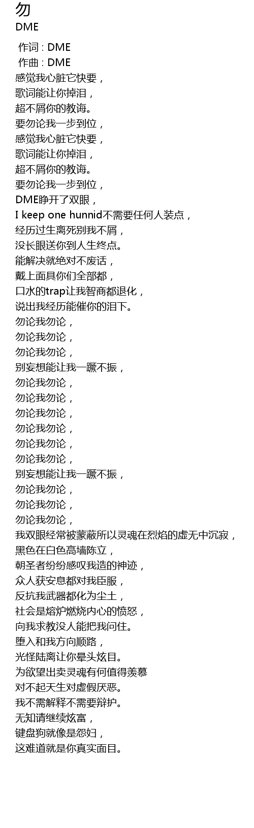 | [00:00.000] | 作词 : DME |