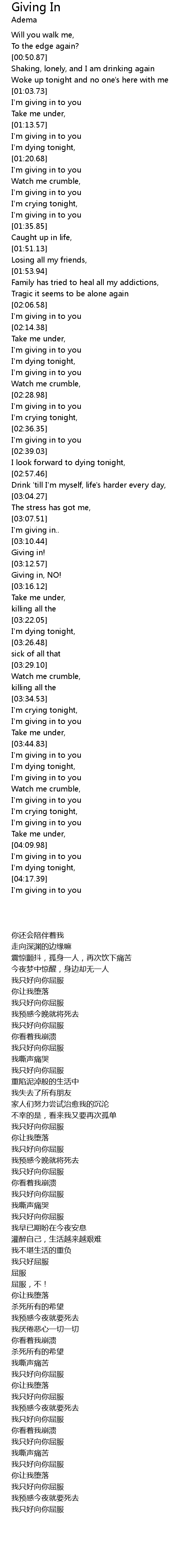 I'm giving in to you |