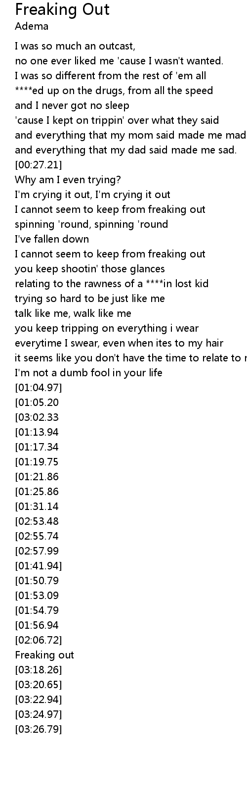 | [00:44.36] | I cannot seem to keep from freaking out |