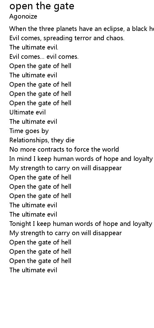 Open the gate of hell |