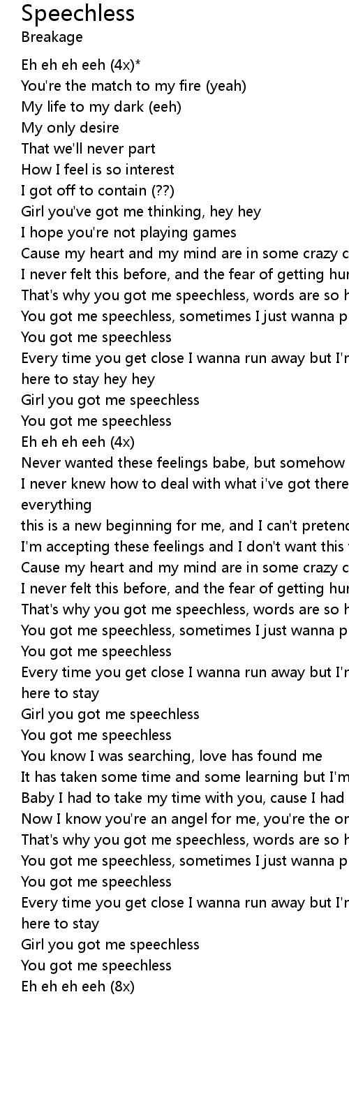 That's why you got me speechless, words are so hard to explain eh eh |
