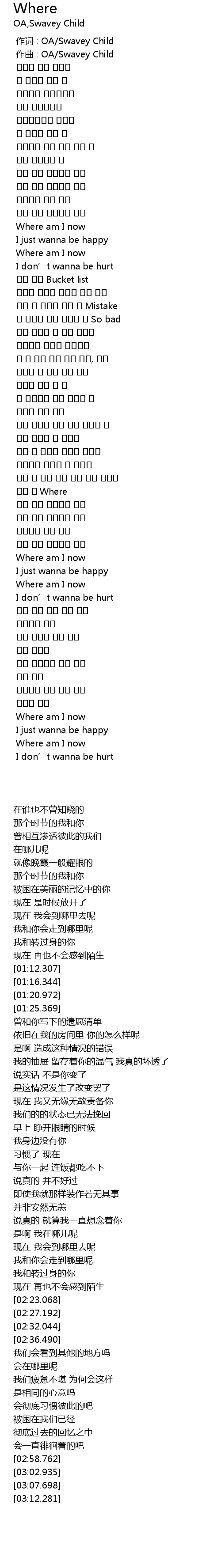 作词 : OA/Swavey Child |