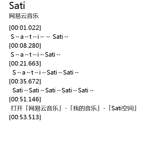 | [00:52.465] | 打开「网易云音乐」-「我的音乐」-「Sati空间」 |