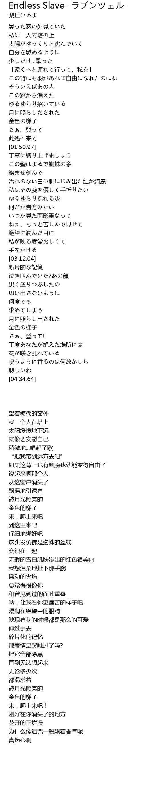 Endless Slave -ラプンツェル- 歌词