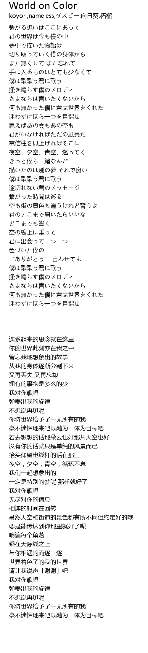| [01:52.110] | 夜空,夕空,青空,循环不息 |