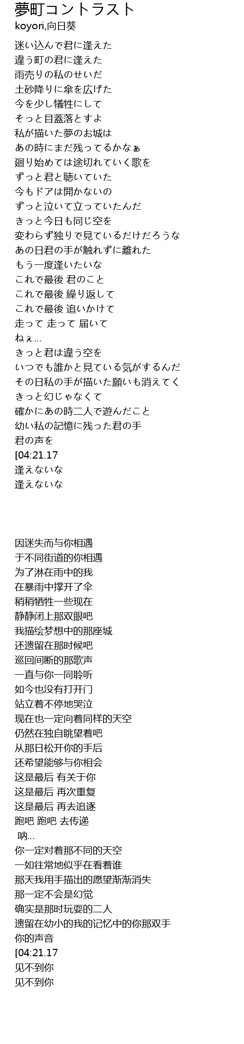 | [04:15.95][04:21.17][04:27.02] | 逢いたいな 逢いたいな |