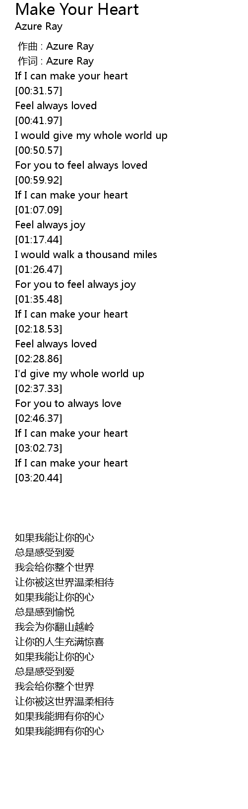 | [03:00.15] | If I can make your heart |