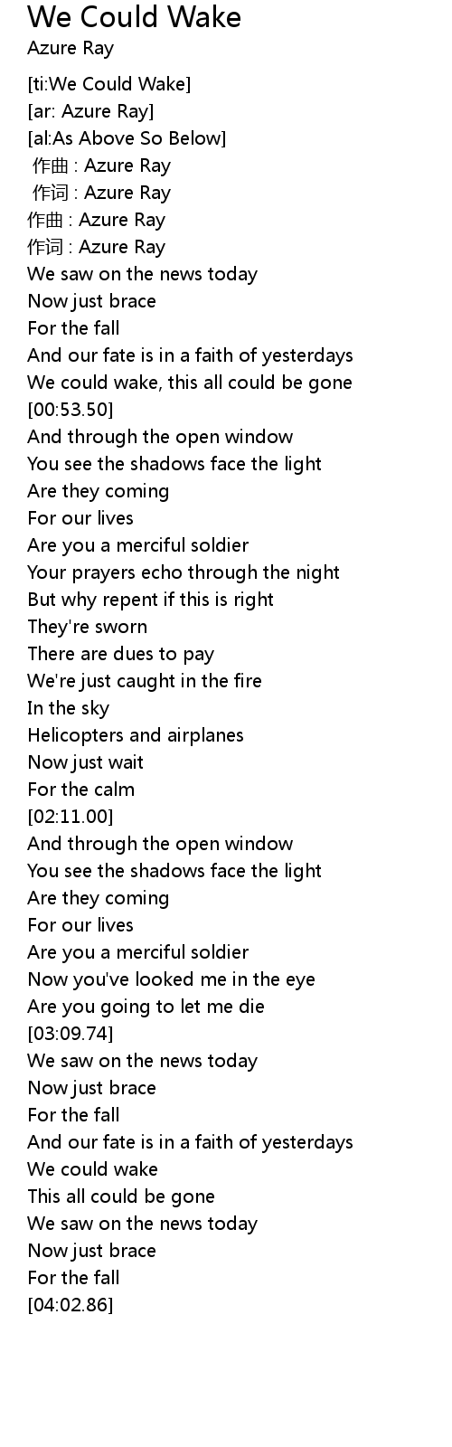 | [00:00.00] | zuò qǔ : Azure Ray |