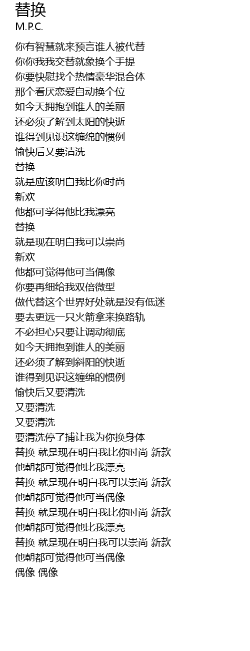 | 歌曲 | 替换 |