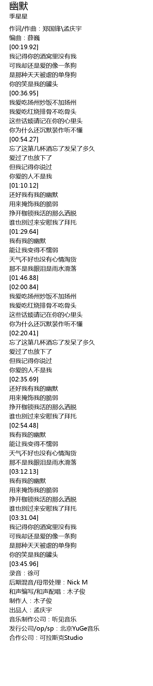 | [02:37.86] | hái hǎo wǒ yǒu wǒ de yōu mò |