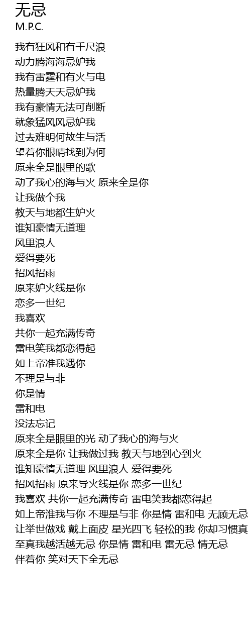 | 歌曲 | 无忌 |