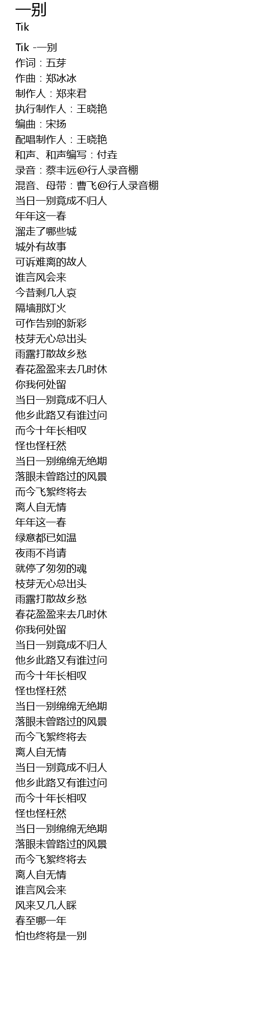 | [03:58.577] | dāng rì yī bié jìng chéng bù guī rén |