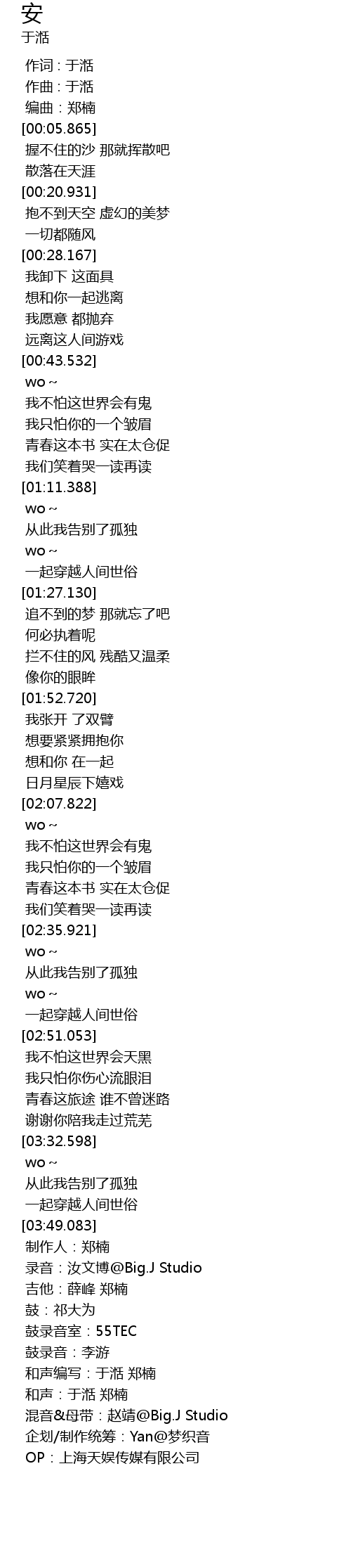 | [00:00.000] | 作词 : 于湉 |