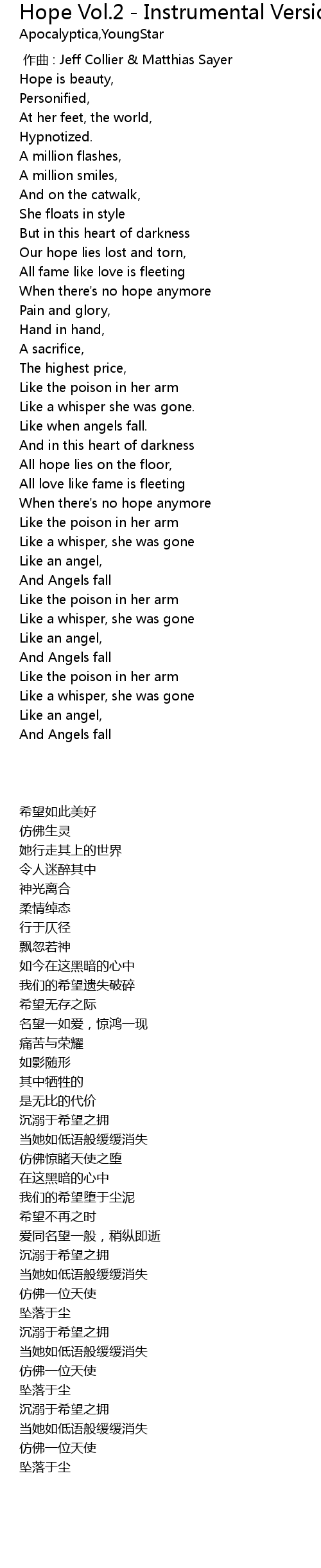 | [02:19.20] | 仿佛惊睹天使之堕 |