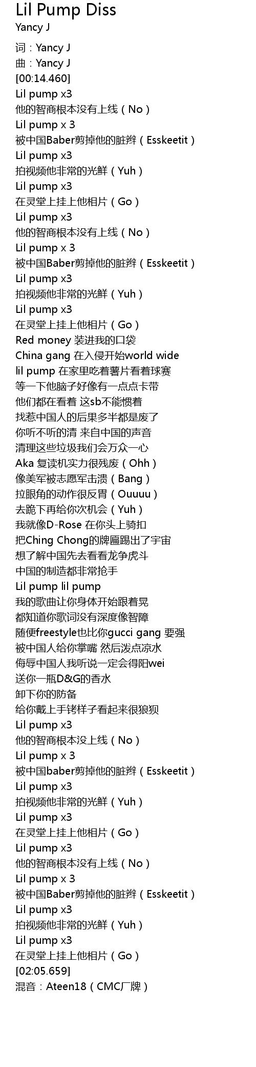 | [01:09.049] | 把Ching Chong的牌匾踢出了宇宙 |