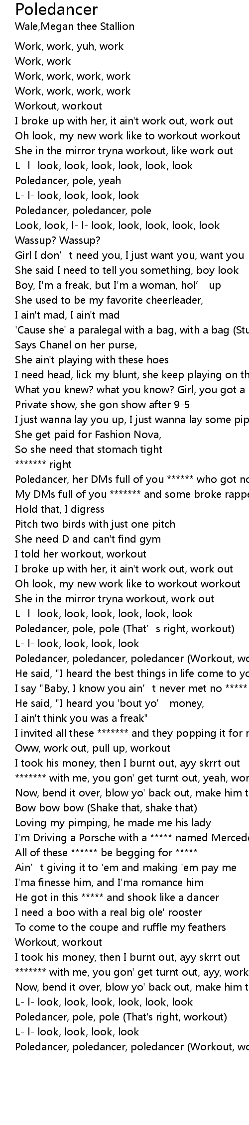 | [02:01.65] | Poledancer, poledancer, poledancer (Workout, workout, Stallion) |