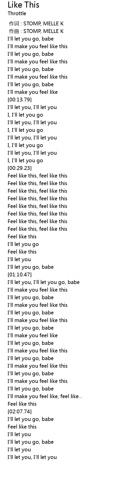 | [00:34.38] | Feel like this, feel like this |