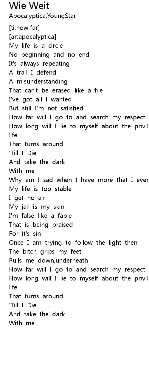 | [02:41.80] | How long will I lie to myself about the privilege of my life |