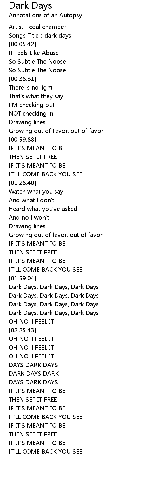 | [02:15.33] | Dark Days, Dark Days, Dark Days |