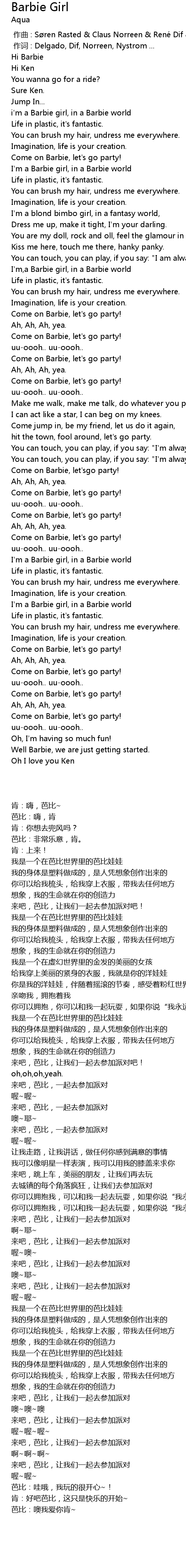 | [00:09.300] | i' m a Barbie girl, in a Barbie world |