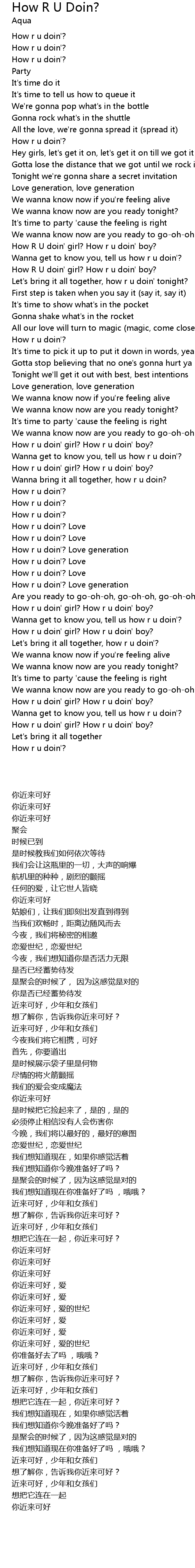 Wanna get to know you, tell us how r u doin'? |