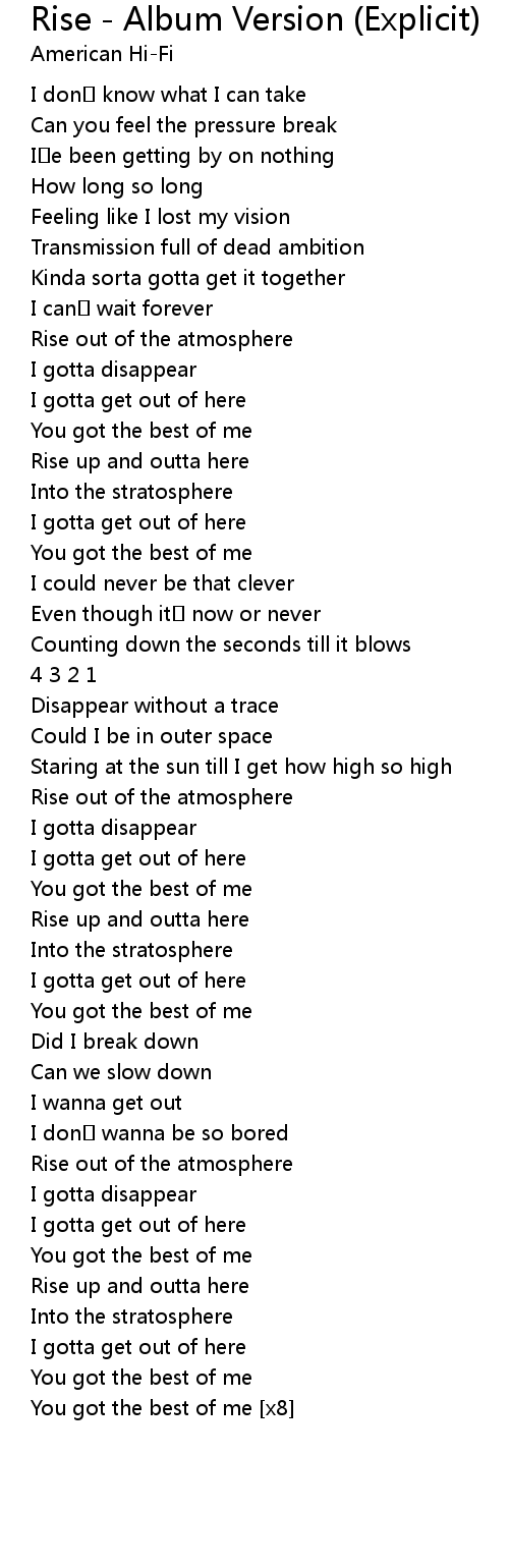 | 歌曲 | Rise - Album Version (Explicit) |