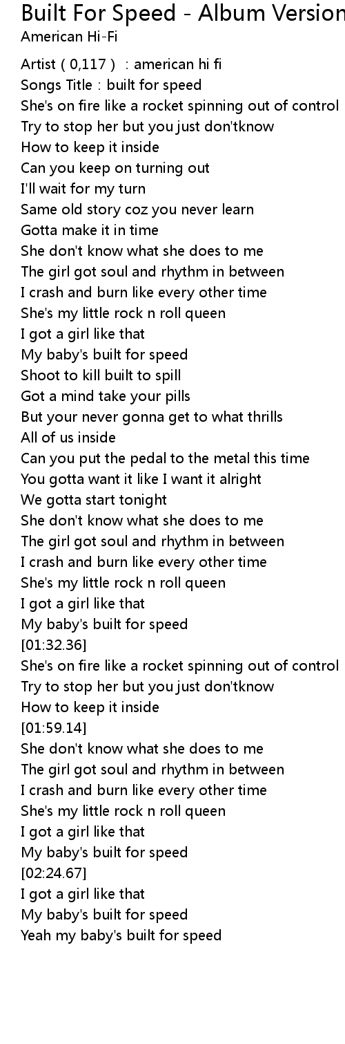 | [00:46.99] | My baby's built for speed |