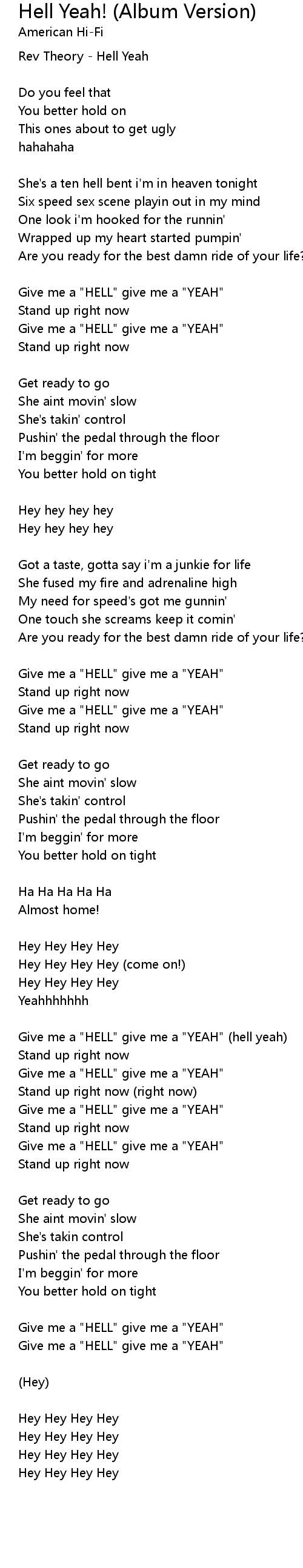 Give me a "HELL" give me a "YEAH" (hell yeah) |