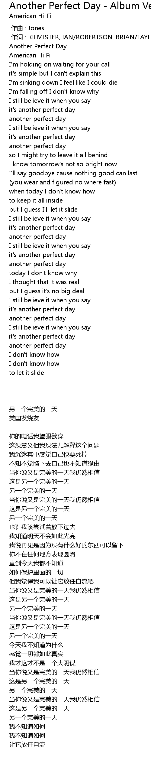 | 歌曲 | Another Perfect Day - Album Version (Explicit) |
