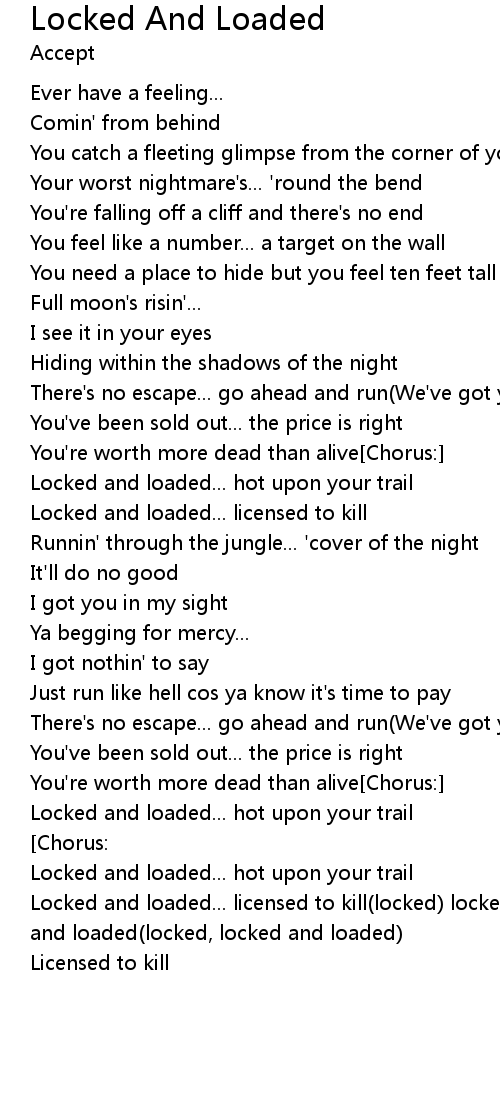 Locked and loaded... licensed to kill(locked) locked and loaded(locked) locked and loaded(locked, locked and loaded) |