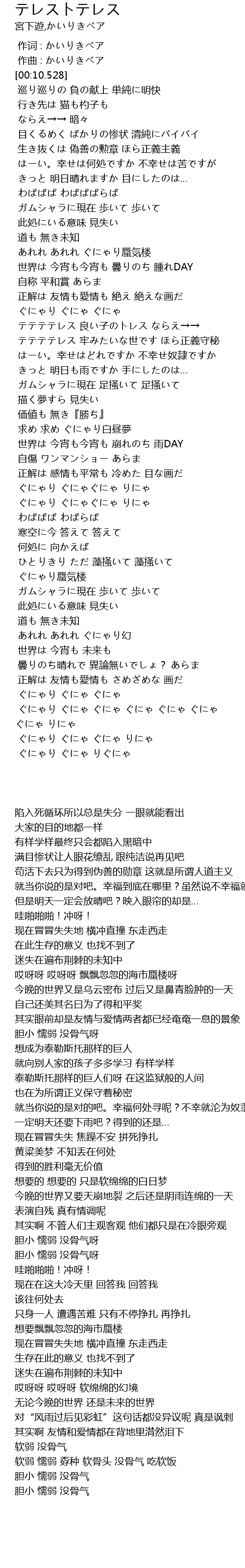 | [01:35.556] | テテテテレス 牢みたいな世です ほら正義守秘 |