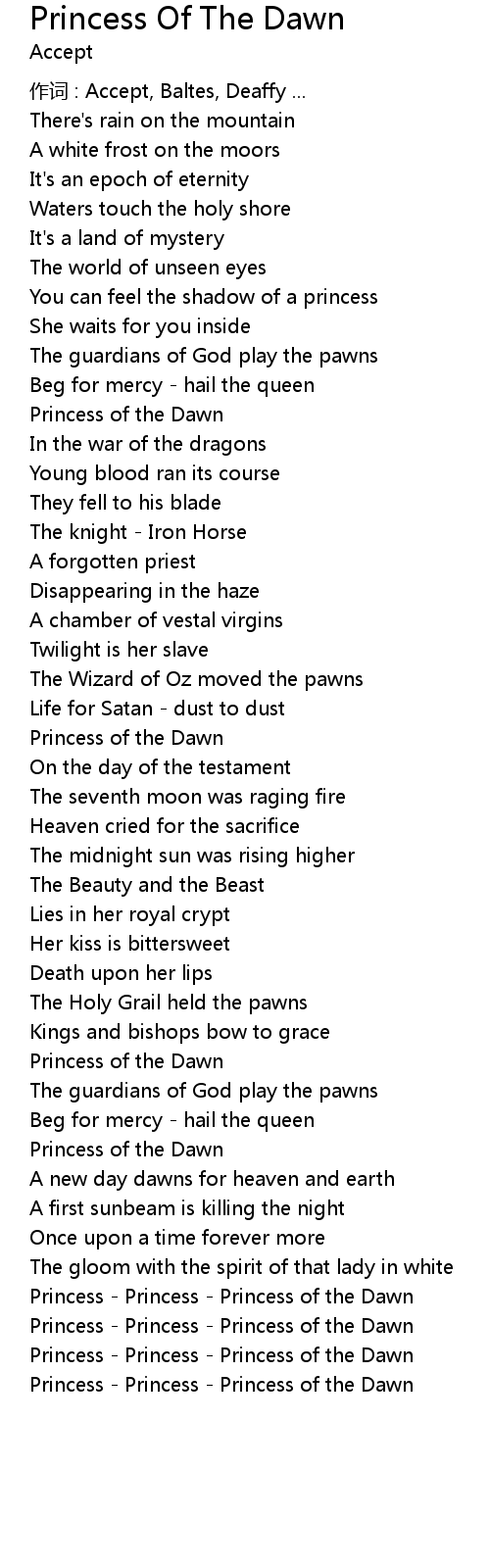 | 作词 : Accept, Baltes, Deaffy ... | |