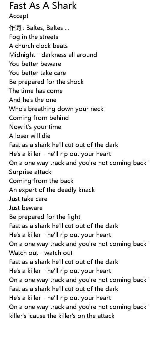| 歌曲 | Fast As A Shark |